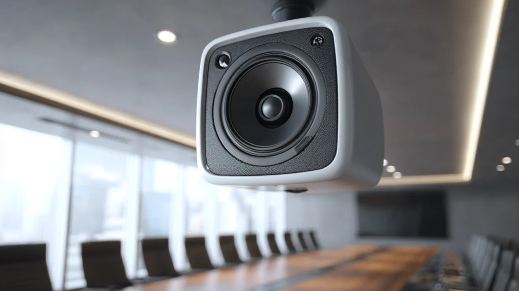 プロジェクター内蔵スピーカーでは音質が不足することが多く、外部スピーカーの導入が推奨されます。音声が明瞭で、会議室全体に響き渡るように調整することが大切です。